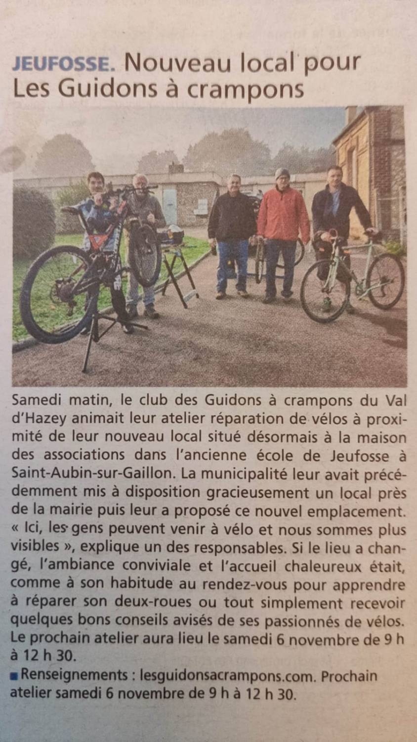 Dans la presse Nouveau local pour les Guidons à Crampons – l’Impartial – 14 octobre 2021 Publié par angeline1986 le 19 octobre 202120 octobre 2021