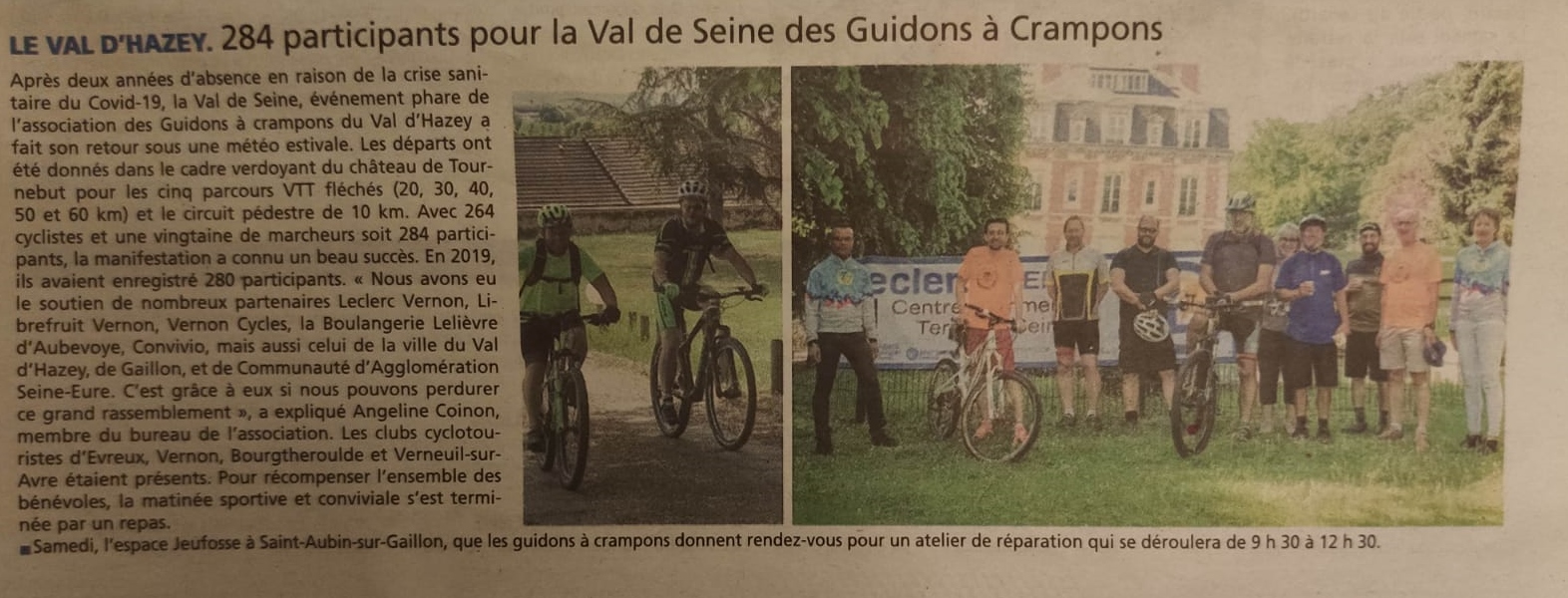 Dans la presse 284 participants pour la Val de Seine des Guidons à Crampons – l’Impartial – 19 mai 2022 Publié par angeline1986 le 23 Mai 202224 Mai 2022